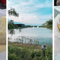 Tempura or grilled shrimp, shredded cabbage, margarita-tomatillo pico with tajin, cilantro-lime crema, garlic sauce, feta, cilantro & lime on a flour tortilla.